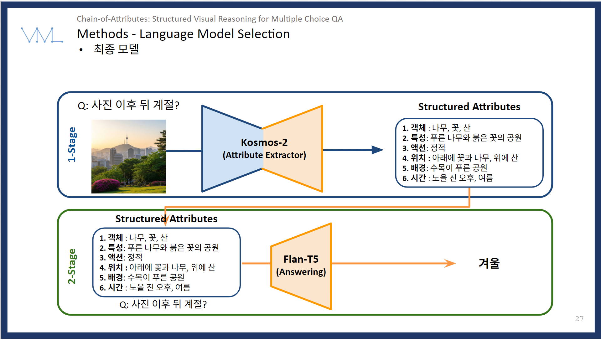 구조적 속성 추출과 추론 기반 응답을 결합한 Visual Question Answering 시스템.